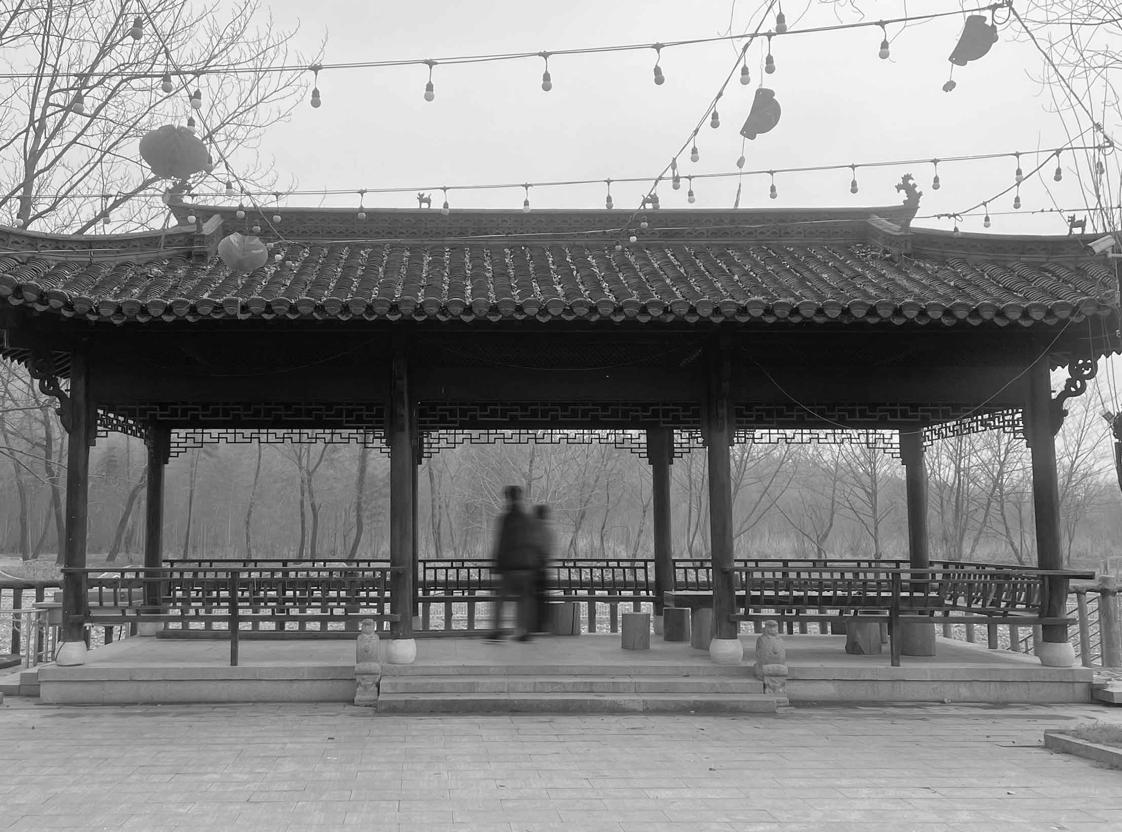 The original landscape pavilion was well preserved, so we don’t need to conduct too much repair or demolition. We just paved a layer of old wood floor on the original ground to make it more smooth, and an 800mm expansion area was set as an outdoor guest area. The other parts are enclosed with glass to create a “glass pavilion” form. The transparent property of the glass retains the visual linkage between the open view of the river of the Moon Bay in the west and the indoor and outdoor space, and also provides the necessary thermal insulation performance for the interior space to cope with the local climate characteristics of hot in summer and cold in winter.There were two stone lions at the entrance to the original site. In traditional architectural forms, stone lions are mostly set at the two sides of the gate as house guardian beasts, and won’t be used in the structure of a pavilion. However, we believe that the stone lions here precisely show the diversity and inclusiveness of folk culture. With the hope of presenting a good meaning via the two stone lions, we keep them staying where they initially were.