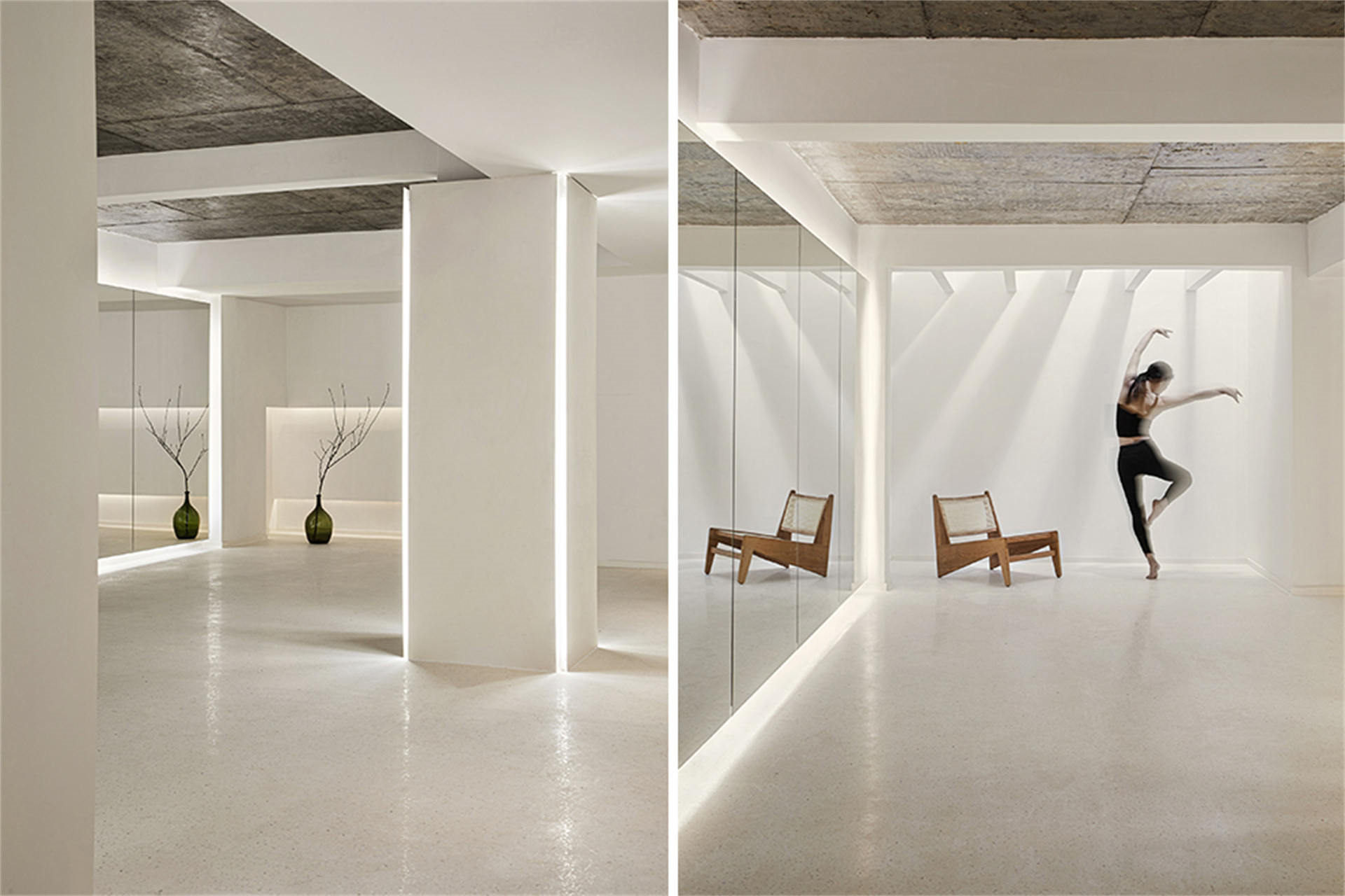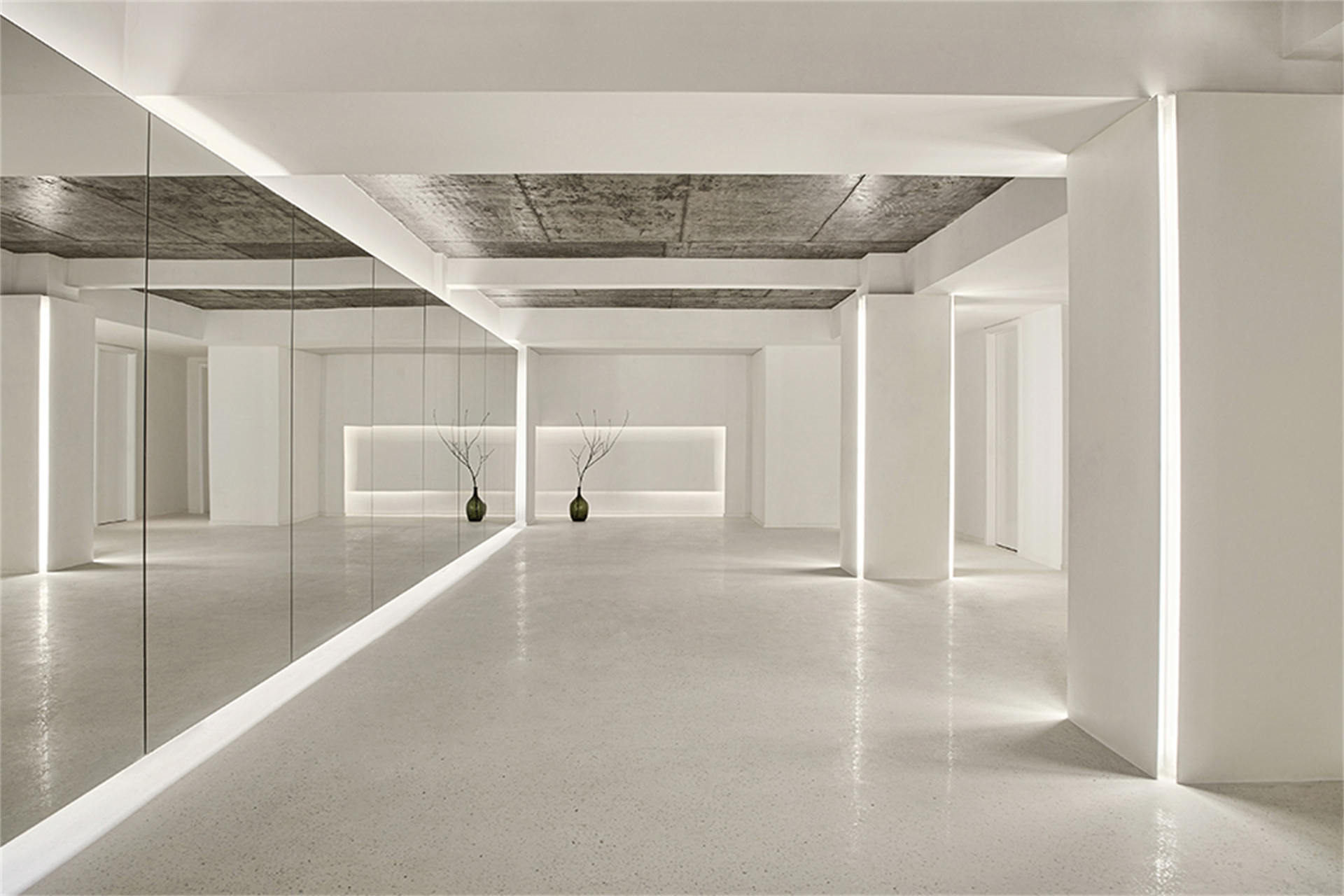 项目在湘湖旁,根据业主的气质与喜欢的风格,还有工作属性,定制了独属于她的房子设计方案——《湘湖上的云》,我们希望在房子里呈现自然,禅意,同时像云一般纯净柔软。用设计的手法,连接这个房子和主人之间的羁绊。业主是一位瑜伽老师兼演员,也是我们的入镜模特。2018年这套房子设计完成,业主不着急入住,到2020年尾,这个项目才全部完工。略不同于其他设计,业主希望可以在室内满足一部分商业功能,希望可以在这边做瑜伽课程,举办沙龙活动。房子一共五层,最终设计格局:-1、-2为瑜伽室,一楼为客餐厅+沙龙区,二楼4个卧室,三楼为主卧大套房。风格为东方极简。-1,-2层是瑜伽室。我们打通了地下所有空间,可以在家中获得一个视野开阔的超大空间。一楼南北两面的窗户旁的采光井,设计了玻璃地面,让地下室原本无自然光源的地方,白天坐在地下仍然会看到阳光洒下。每天太阳东升西落,阳光在-1楼的倾斜角度也会有所变化,我们把时间留在了家里。