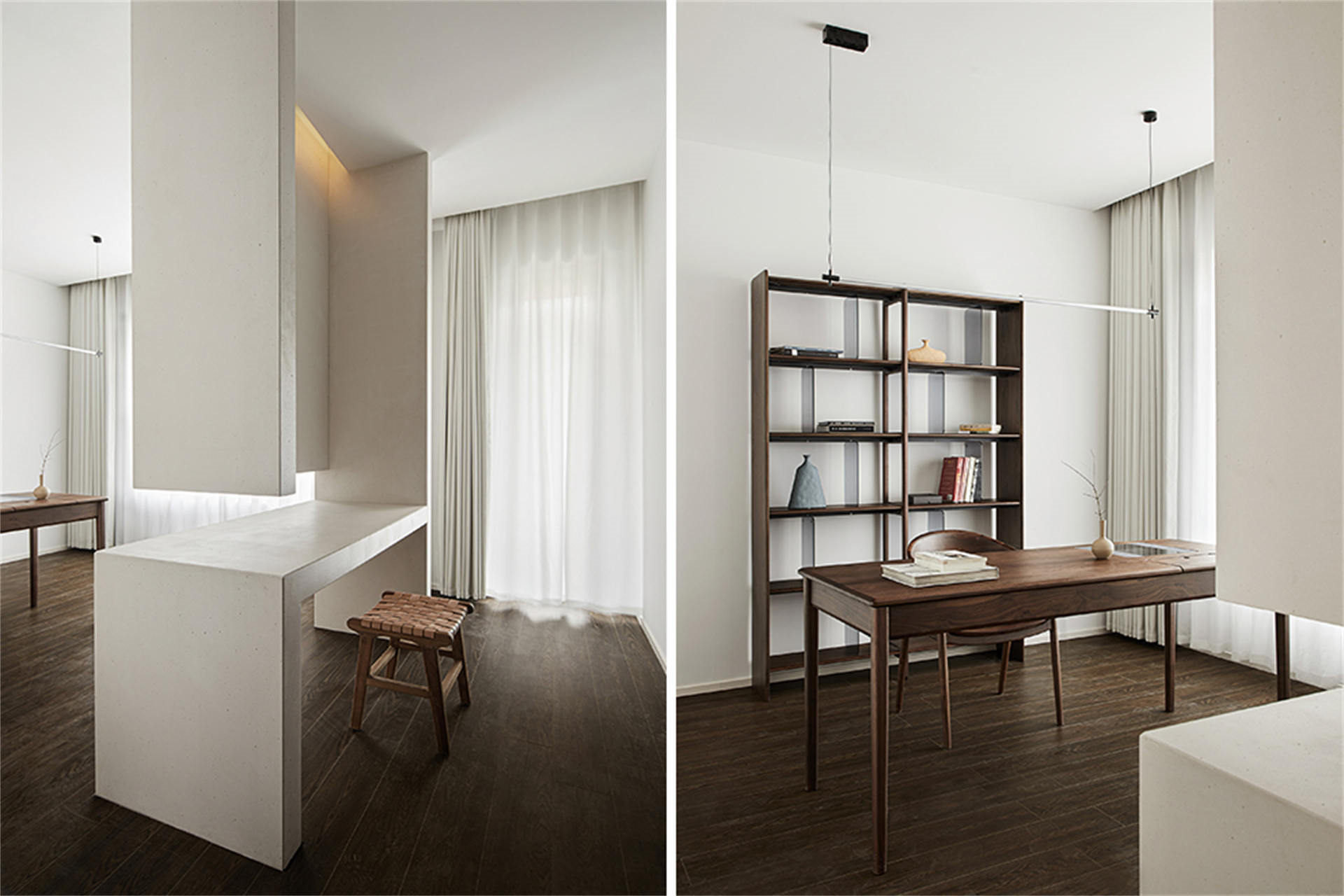 The project is next to Xianghu Lake. According to the owner's temperament, favorite style, and work attributes, we customized her own house design plan - "Clouds on Xianghu Lake". We hope to present nature and Zen in the house, and at the same time Pure and soft as a cloud. Use design techniques to connect the bond between the house and the owner.The owner is a yoga teacher and actor who is also our model. The design of this house was completed in 2018, and the owner is not in a hurry to move in. The project will not be fully completed until the end of 2020. Slightly different from other designs, the owner hopes to meet some commercial functions indoors, and hopes to hold yoga classes and salon activities here. The house has five floors, and the final design layout: -1 and -2 are yoga rooms, the first floor is a guest dining room + salon area, the second floor has 4 bedrooms, and the third floor is a master bedroom suite. The style is minimalist oriental. -1 and -2 floors are yoga rooms. We have opened up all the underground spaces, so we can get a super large space with a wide view at home. The lighting wells next to the windows on the north and south sides of the first floor are designed with glass floors, so that the basement where there is no natural light source can still see the sunlight when sitting underground during the day. The sun rises and sets every day, and the angle of inclination of the sun on the -1st floor will also change. We stayed at home.