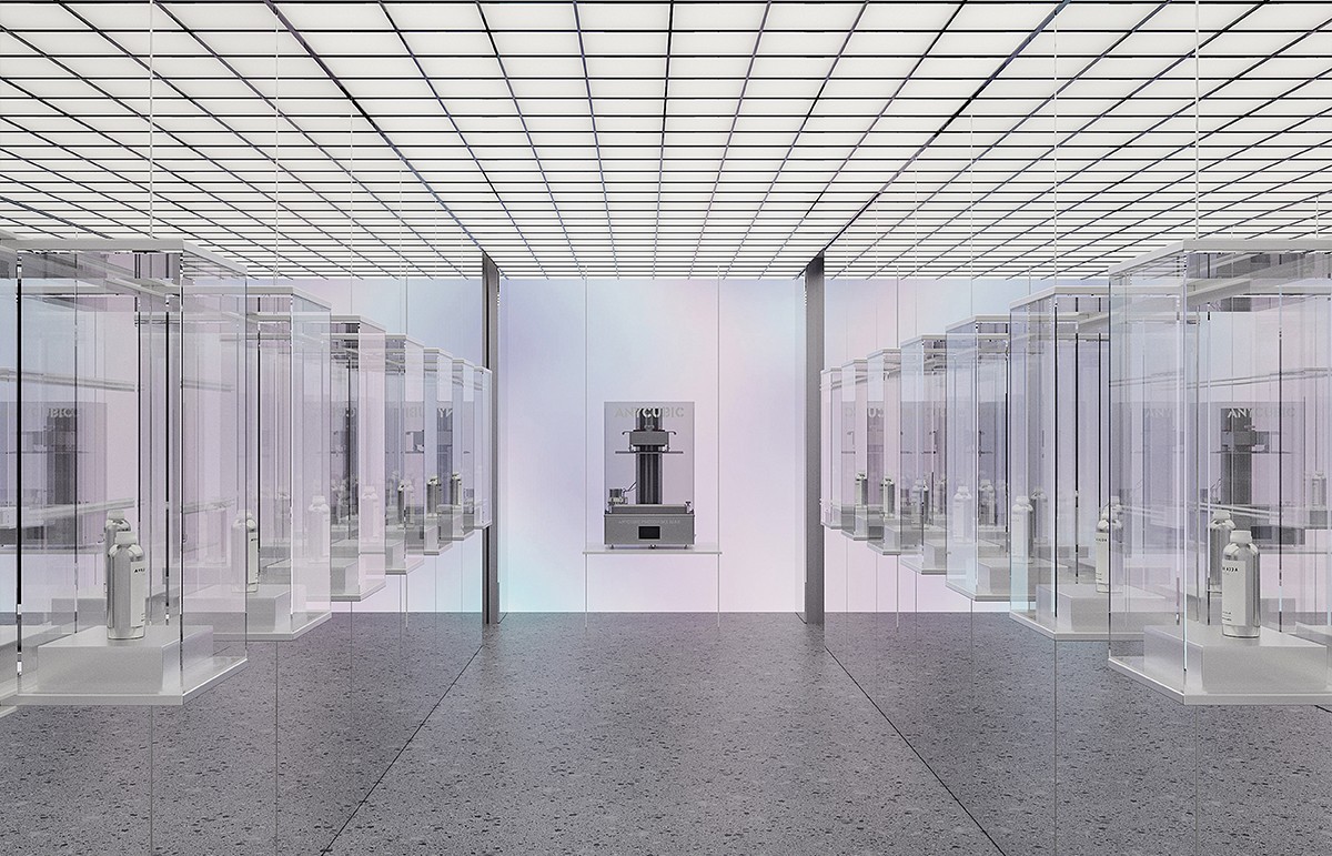 The project is an office of the design department of a cosmetic packaging company, which not only meets the daily office needs, but also has the function of display and selection. Most of their customers are beauty brands such as Huaxizi, so the exhibition of products and immersive experience space for customers is the focus of this design, and then we take "anti-gravity" and "time stagnation" as the theme of space;The entrance is displayed in a pure black space, with only some lights combined with the display box on the wall, which fosters the content of the main space in the form of a dark box;The display cabinet is set on both sides of the corridor. The mirror material used on the wall makes it feel suspended in the air. The 3D printer at the end is suspended by fine steel bars, and the purple gradient light is used to create a psychedelic atmosphere to simulate the effect of outer space