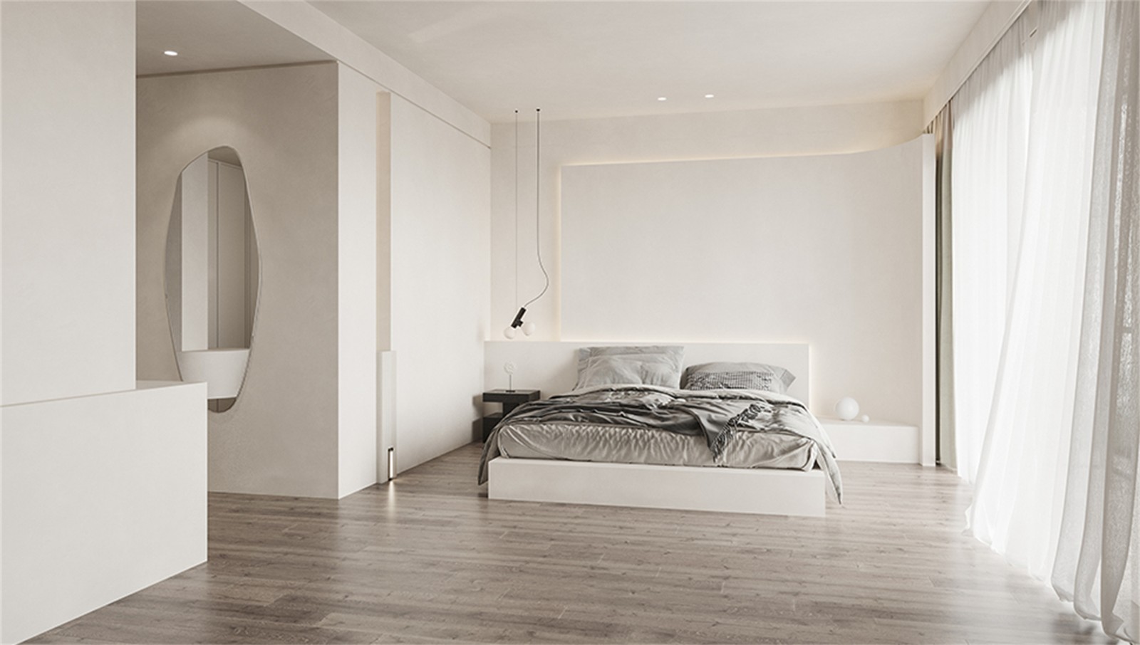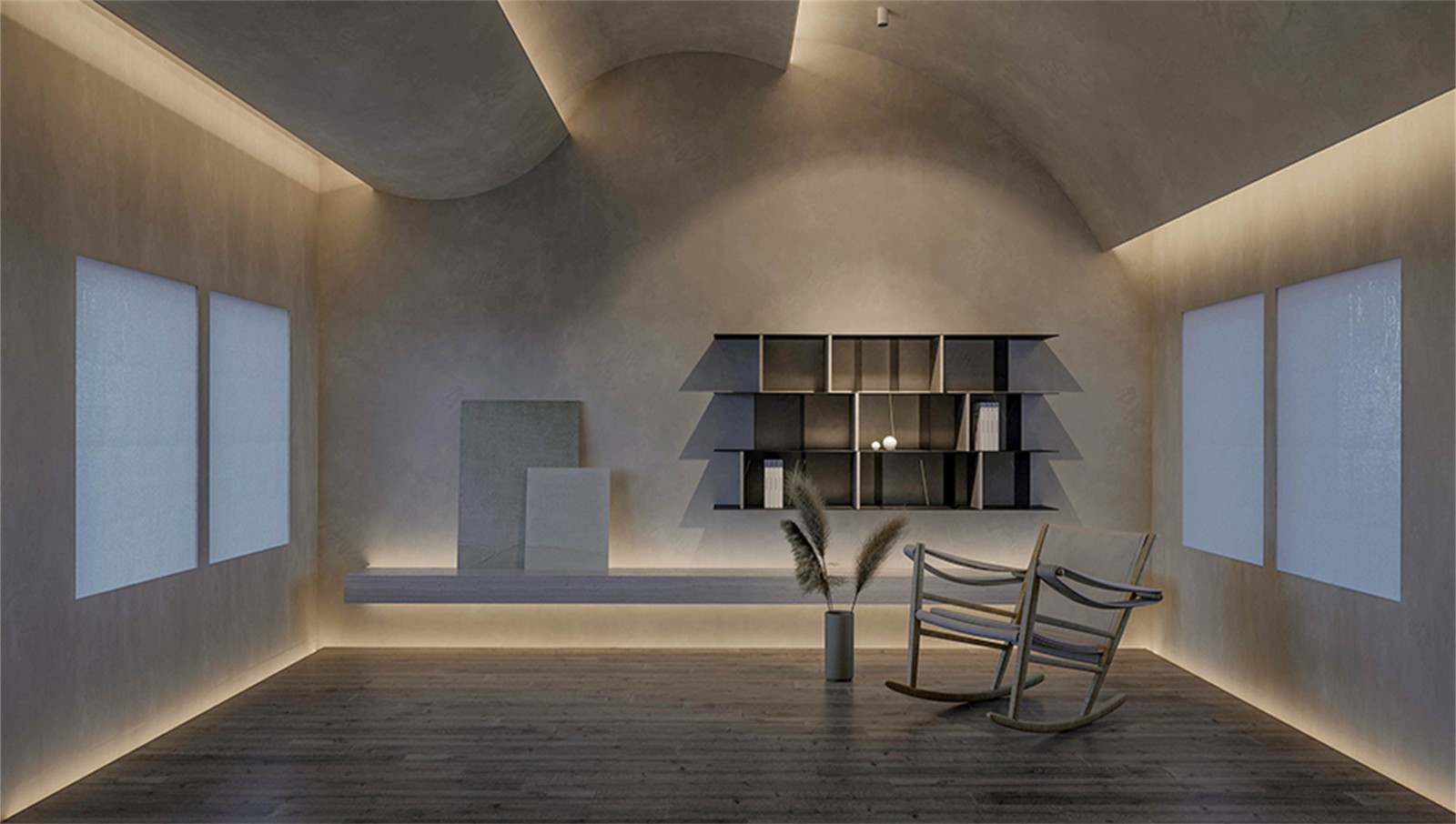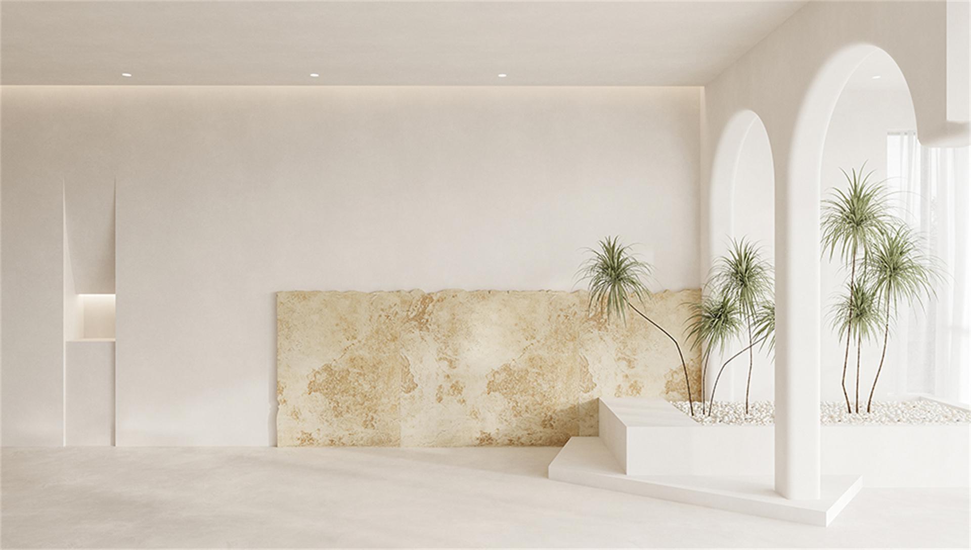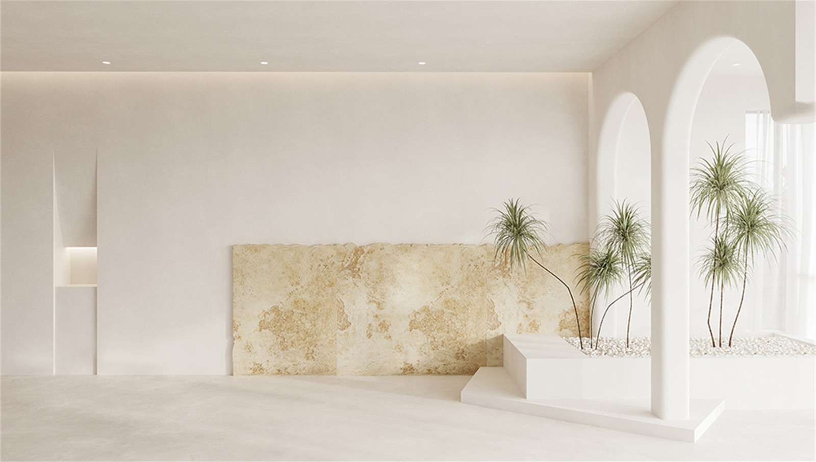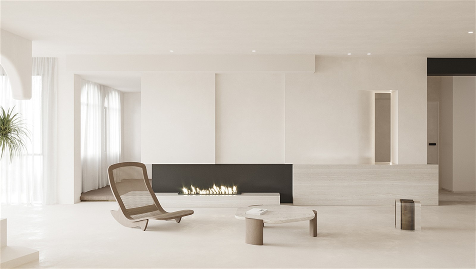 粗糙硬朗的石材与温柔的弧线造型理性与感性的交叠共生